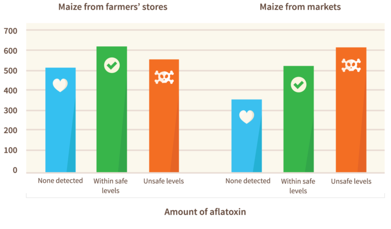 Levels of aflatoxin on our continent are high, and it is also more easily able to reach our plates since African countries lack the strict testing and controls found in places like Europe and North America, and many of our food systems and markets are informal. Governments and organisations are working hard to improve this situation, but systems to deal with aflatoxin are still in their infancy.